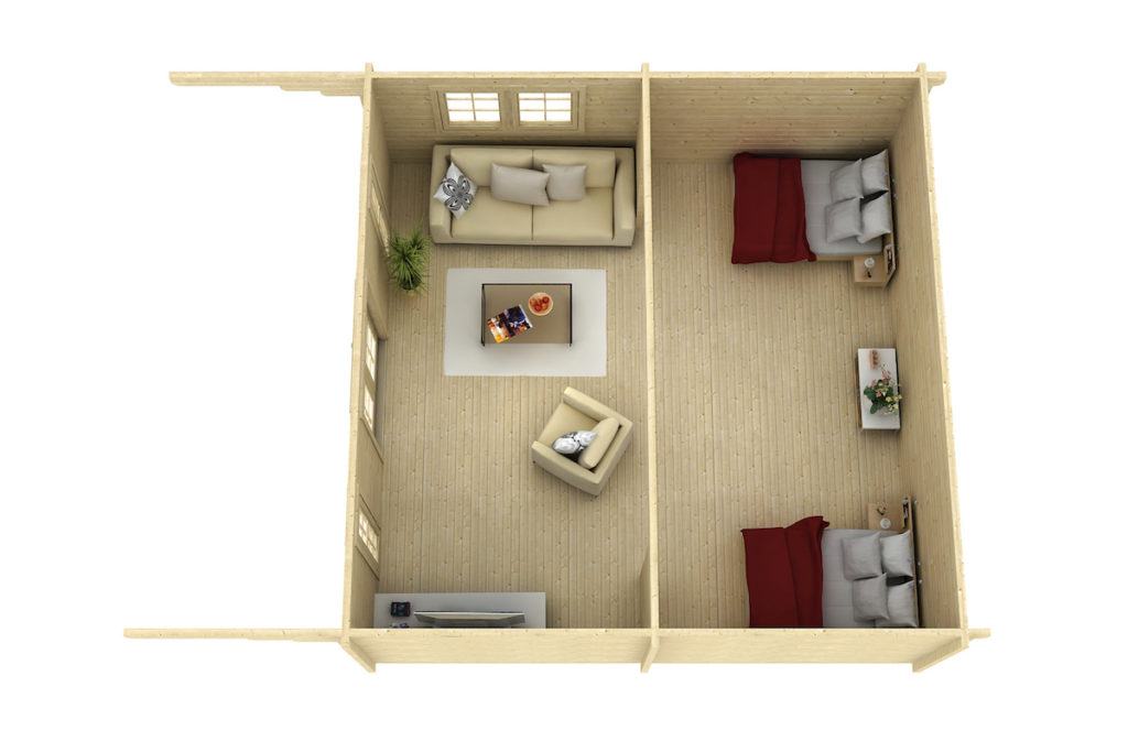 160 sq/ft plus 72 sq/ft Loft (6' high)